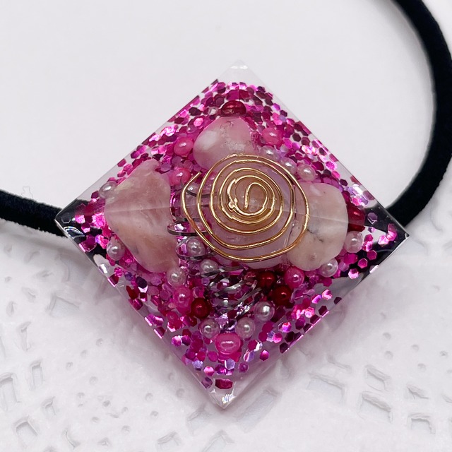 四角錐オルゴナイトの天然石ヘアゴム/ピンク・ピンクオパール|or-058