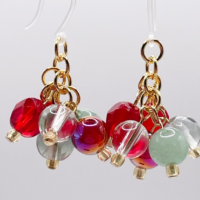 カーネリアン&フローライト&アベンチュリンの天然石ピアス(イヤリング/チャーム)|k-040