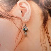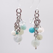 アクアマリンやターコイズなどブルー系の天然石を中心に、澄んだ青空のイメージのピアスに仕上げました。