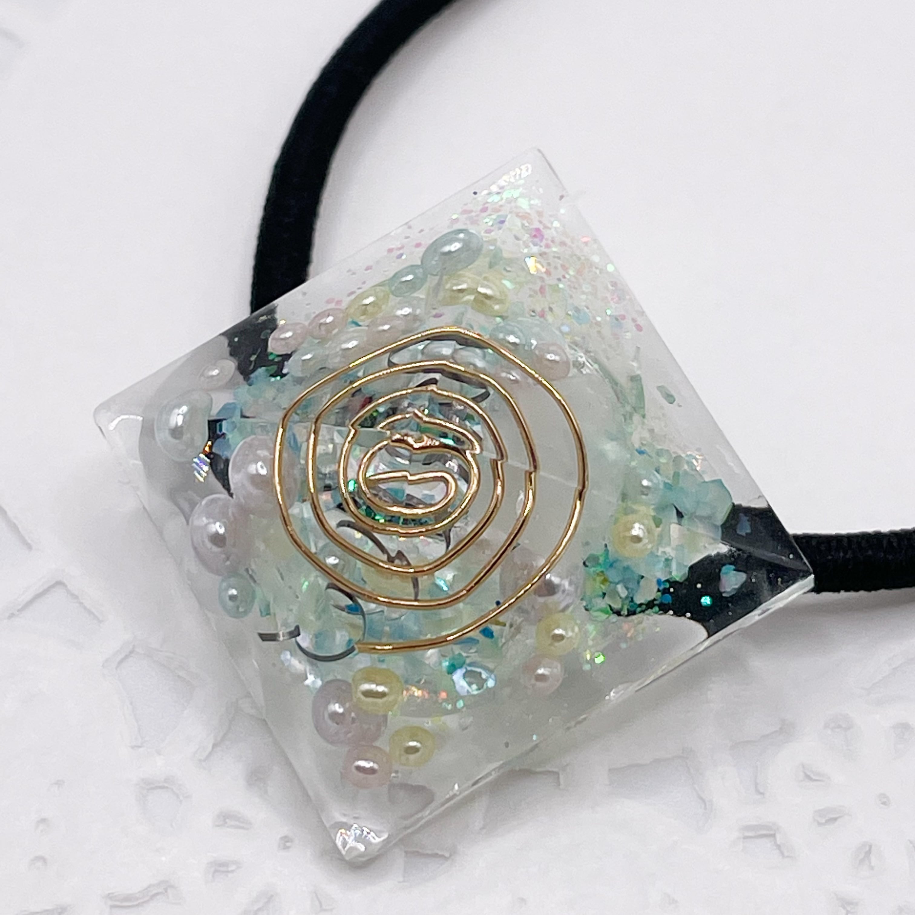 四角錐オルゴナイトの天然石ヘアゴム/パール・水晶|or-050