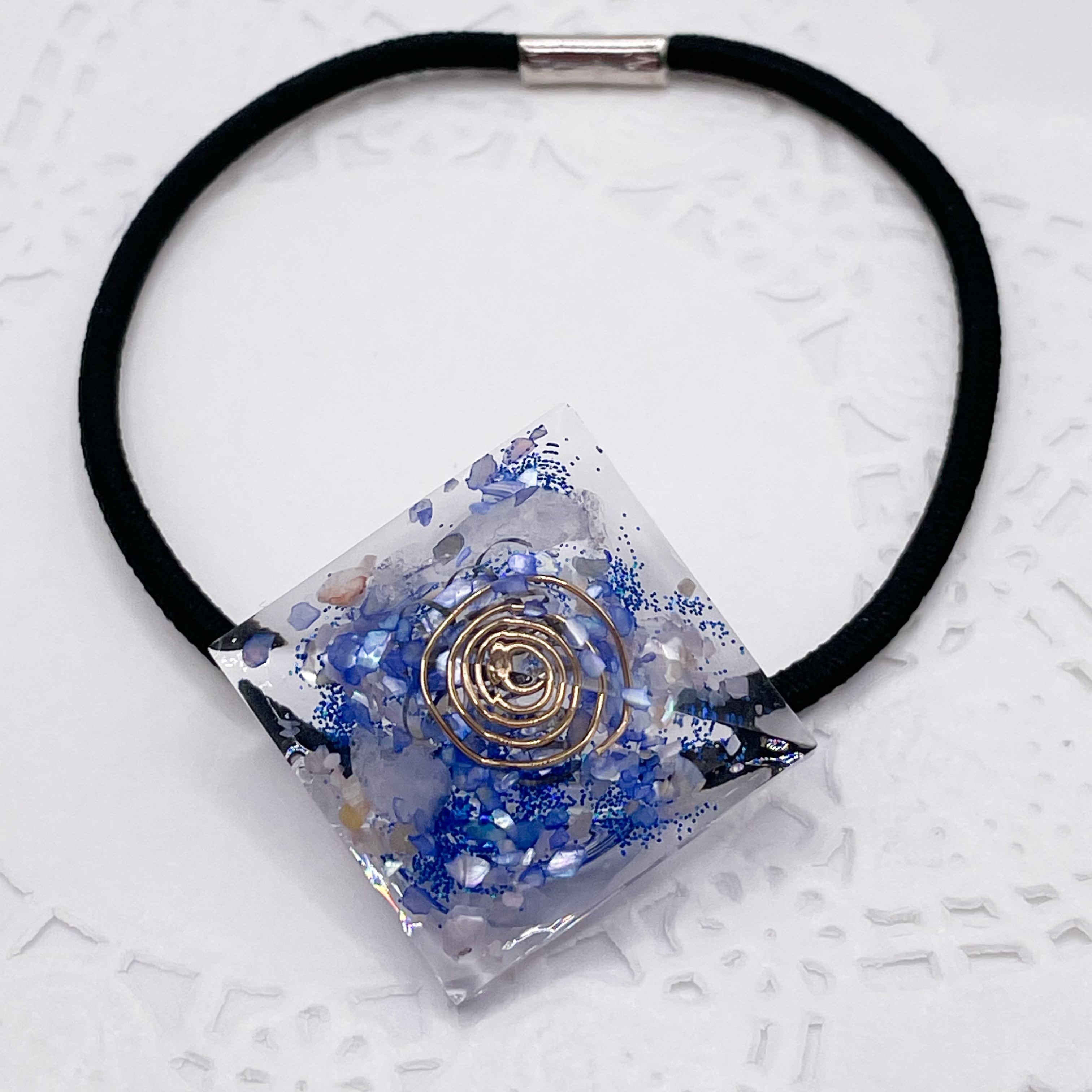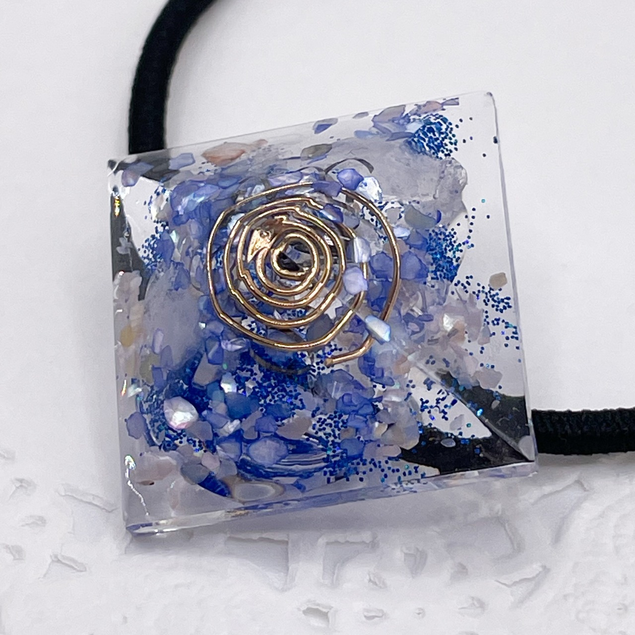 四角錐オルゴナイトの天然石ヘアゴム/ブルー・水晶|or-051