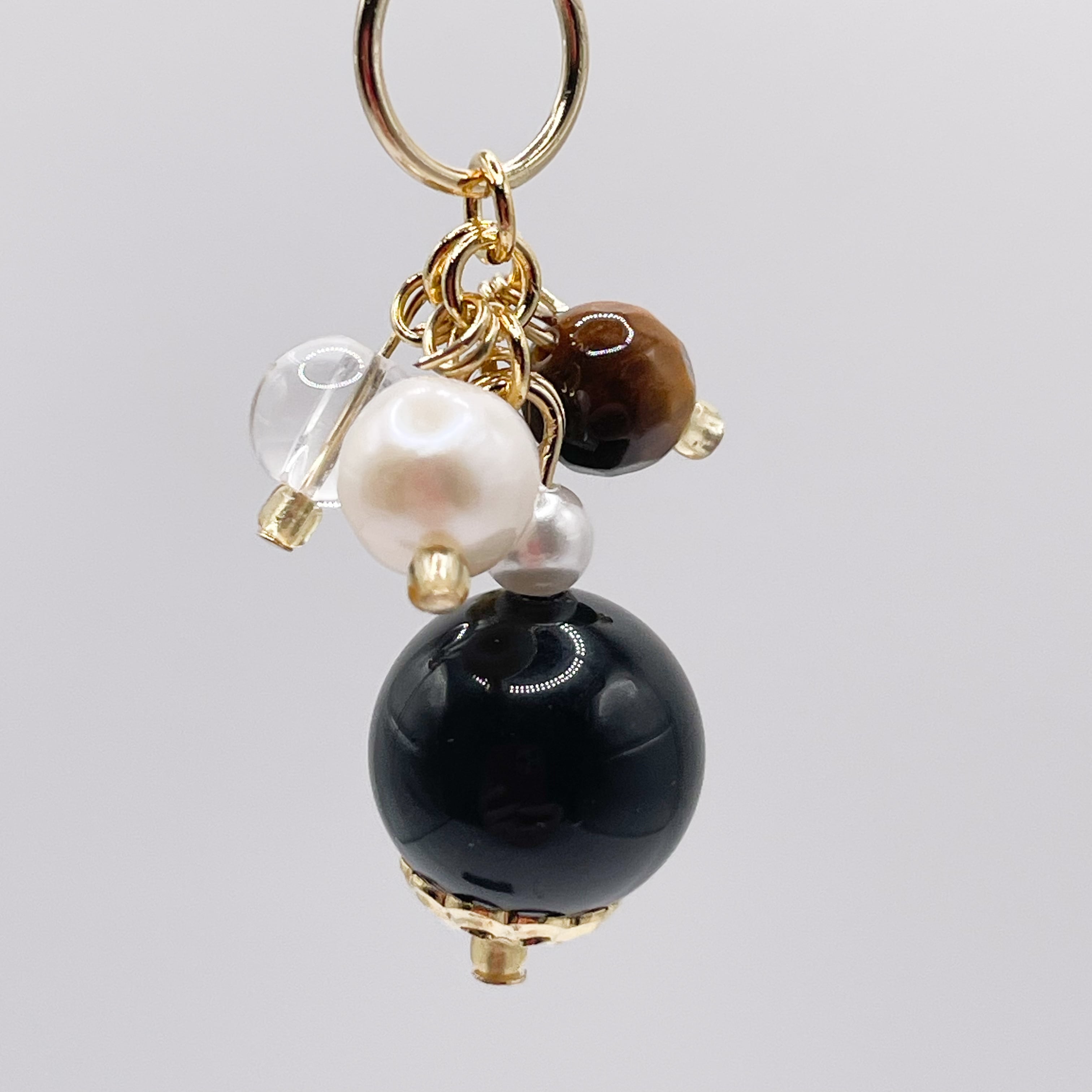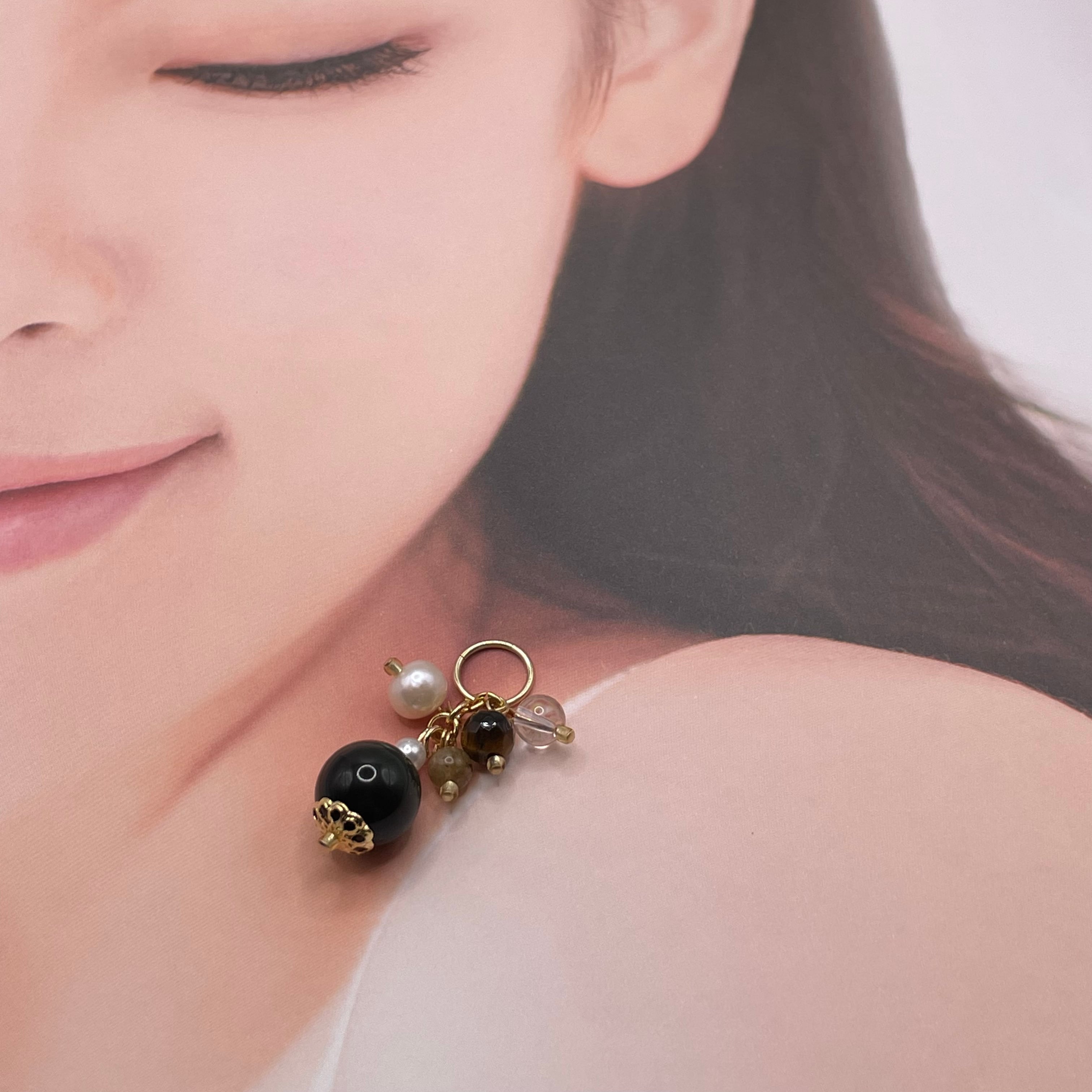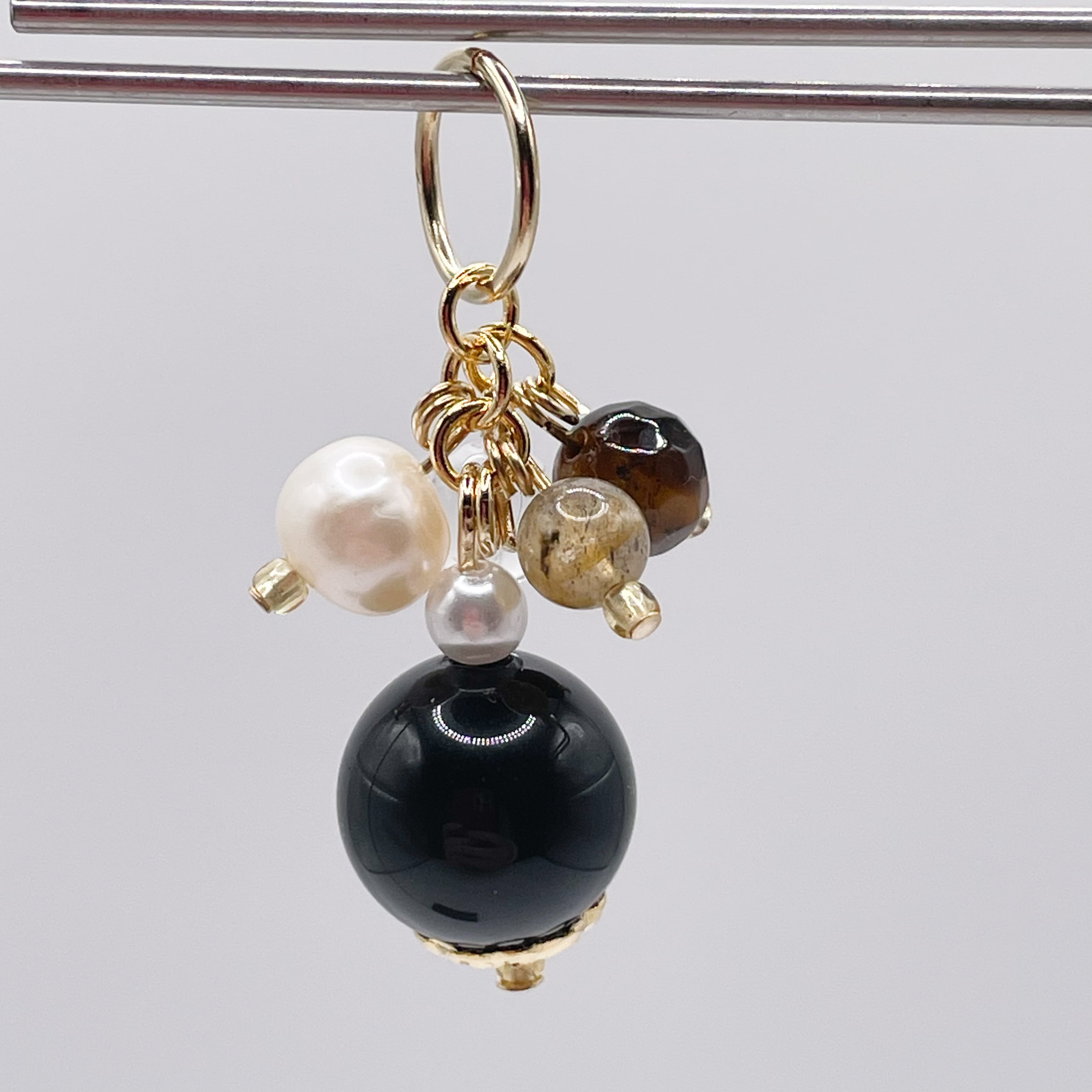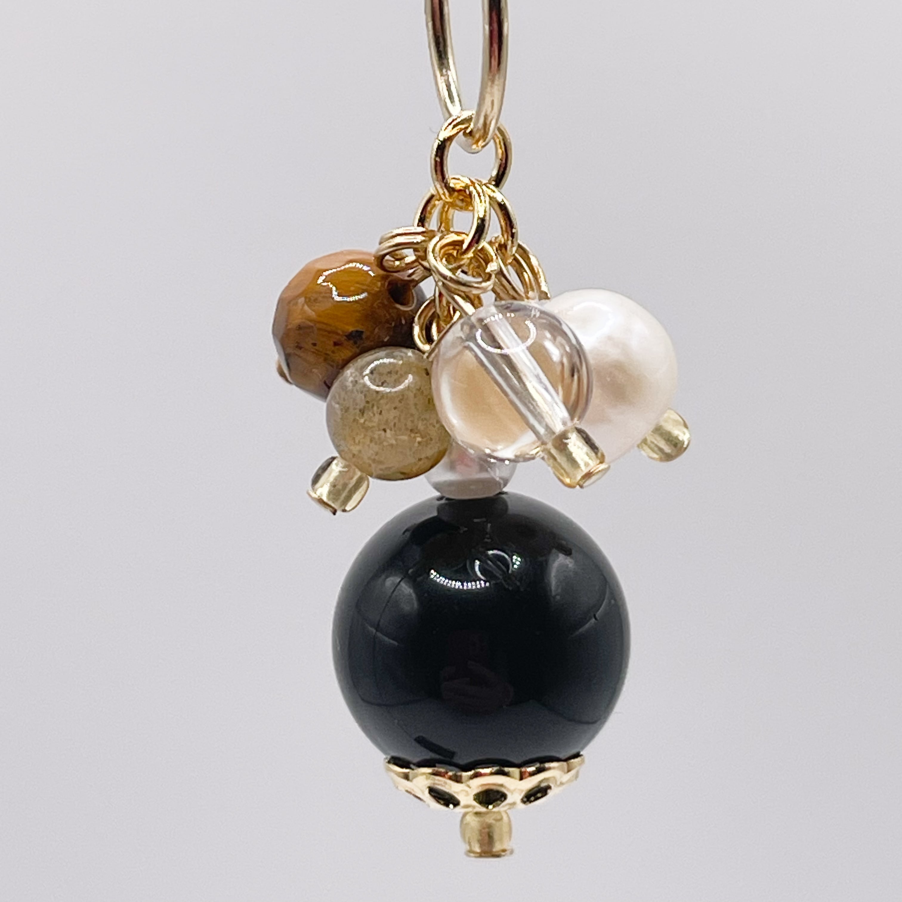 モチーフ部分:オブシディアン、タイガーアイ、ラブラドライト、水晶、淡水パール、樹脂パール