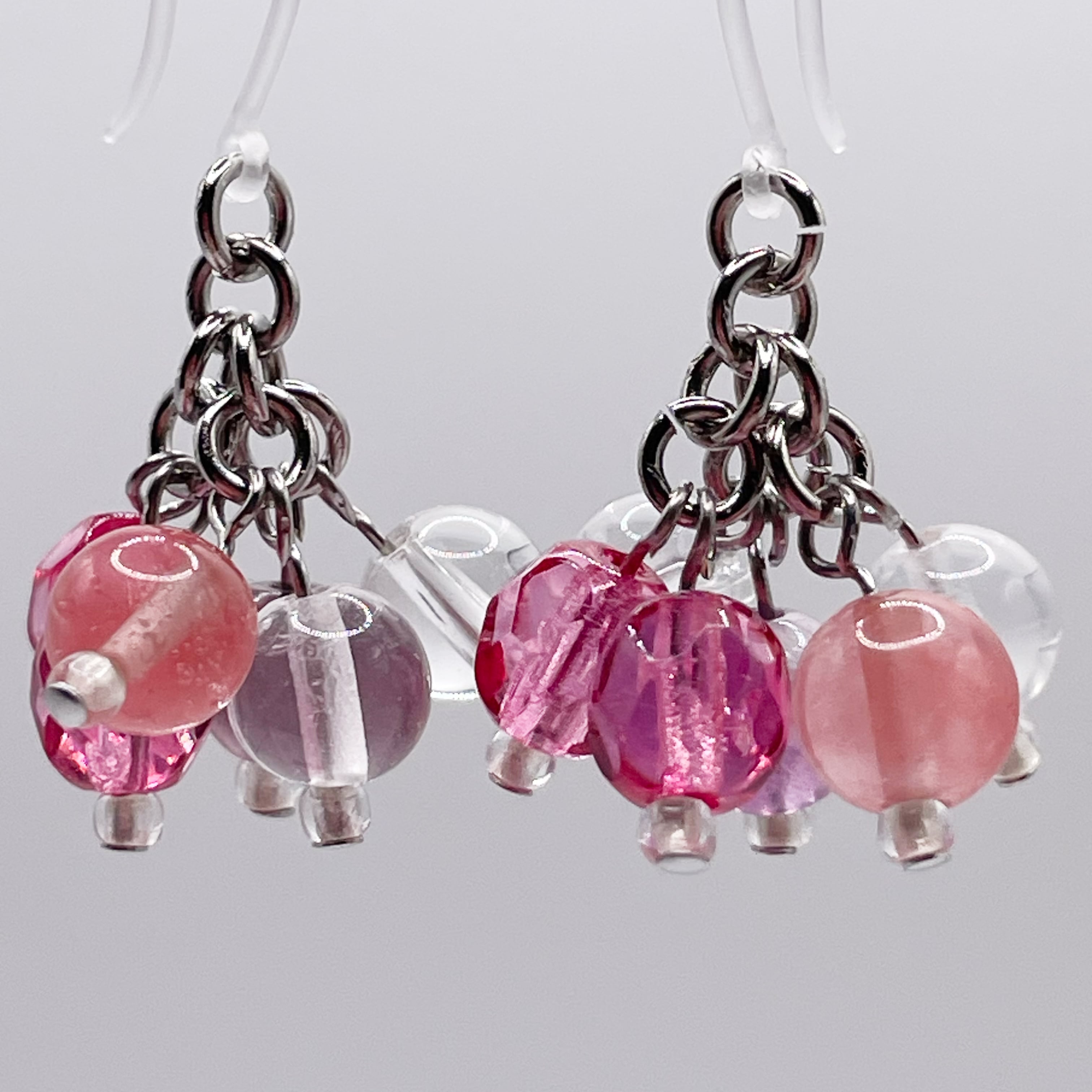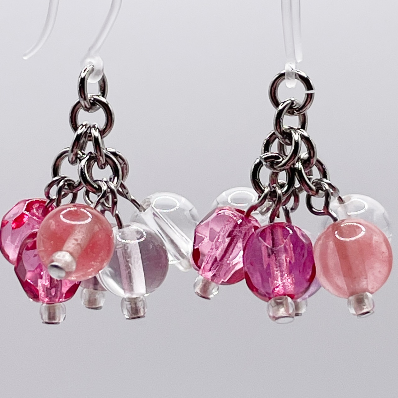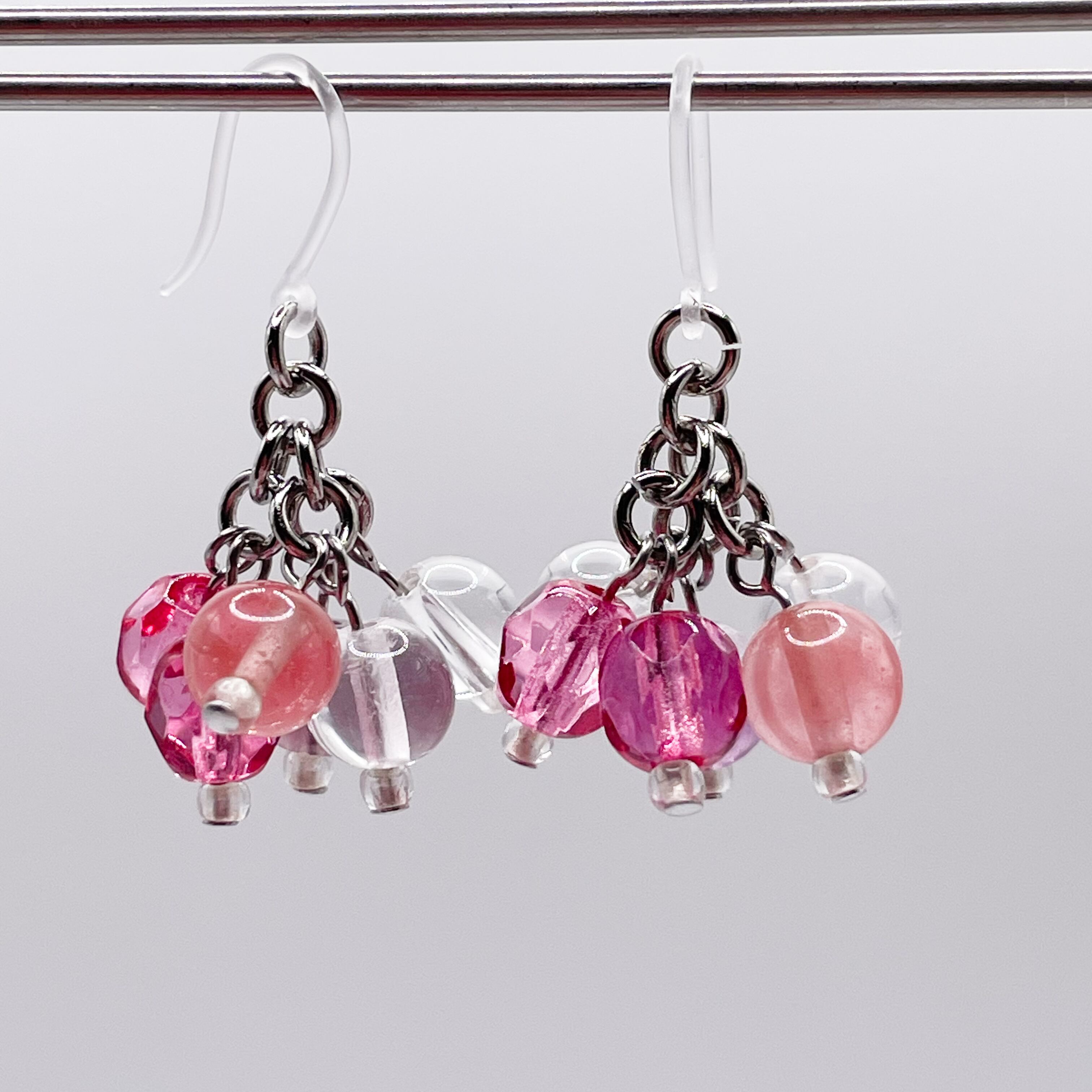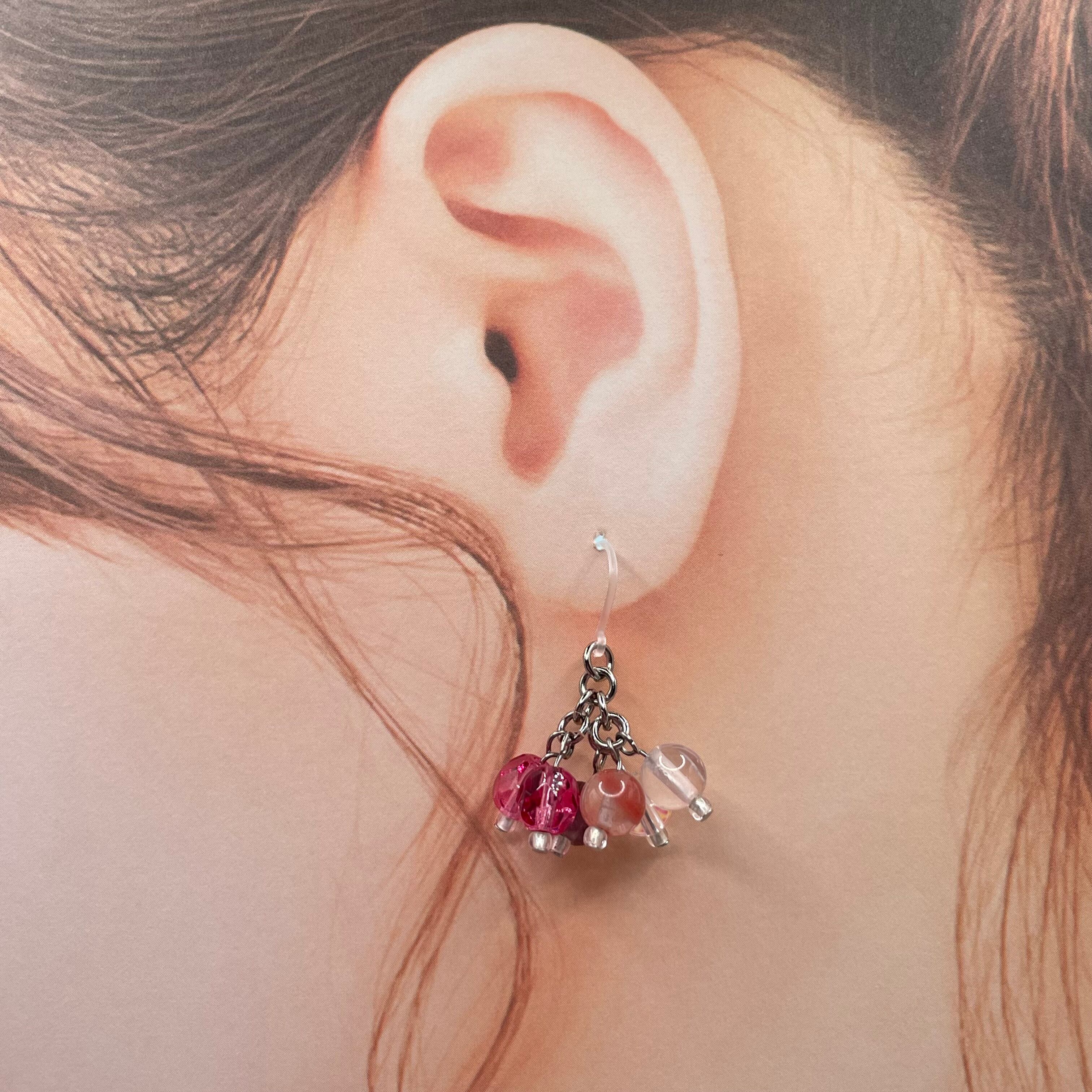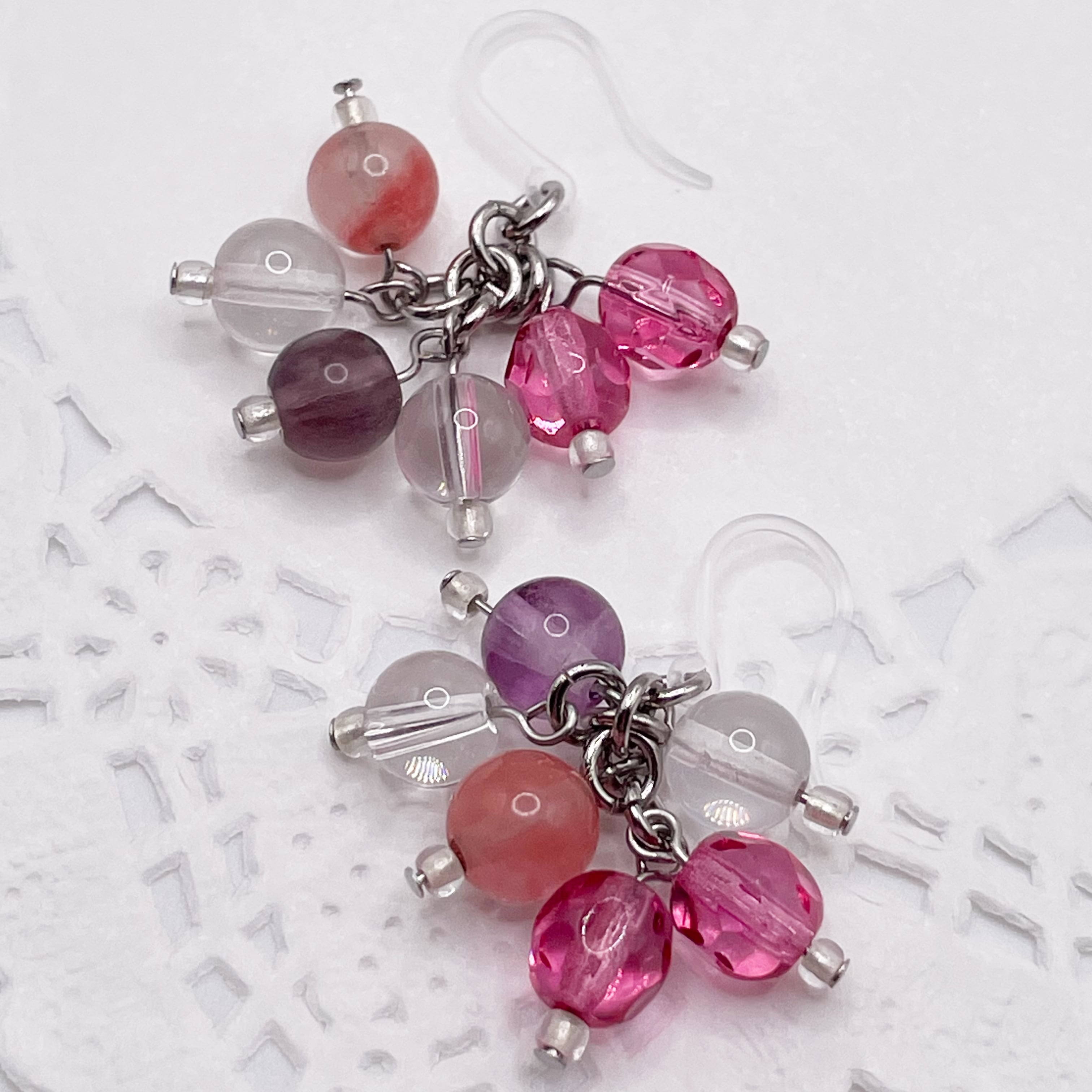 紫系のフローライトやローズクォーツ、ストロベリークォーツといったピンク系の天然石ピアス(イヤリング/チャーム)です。