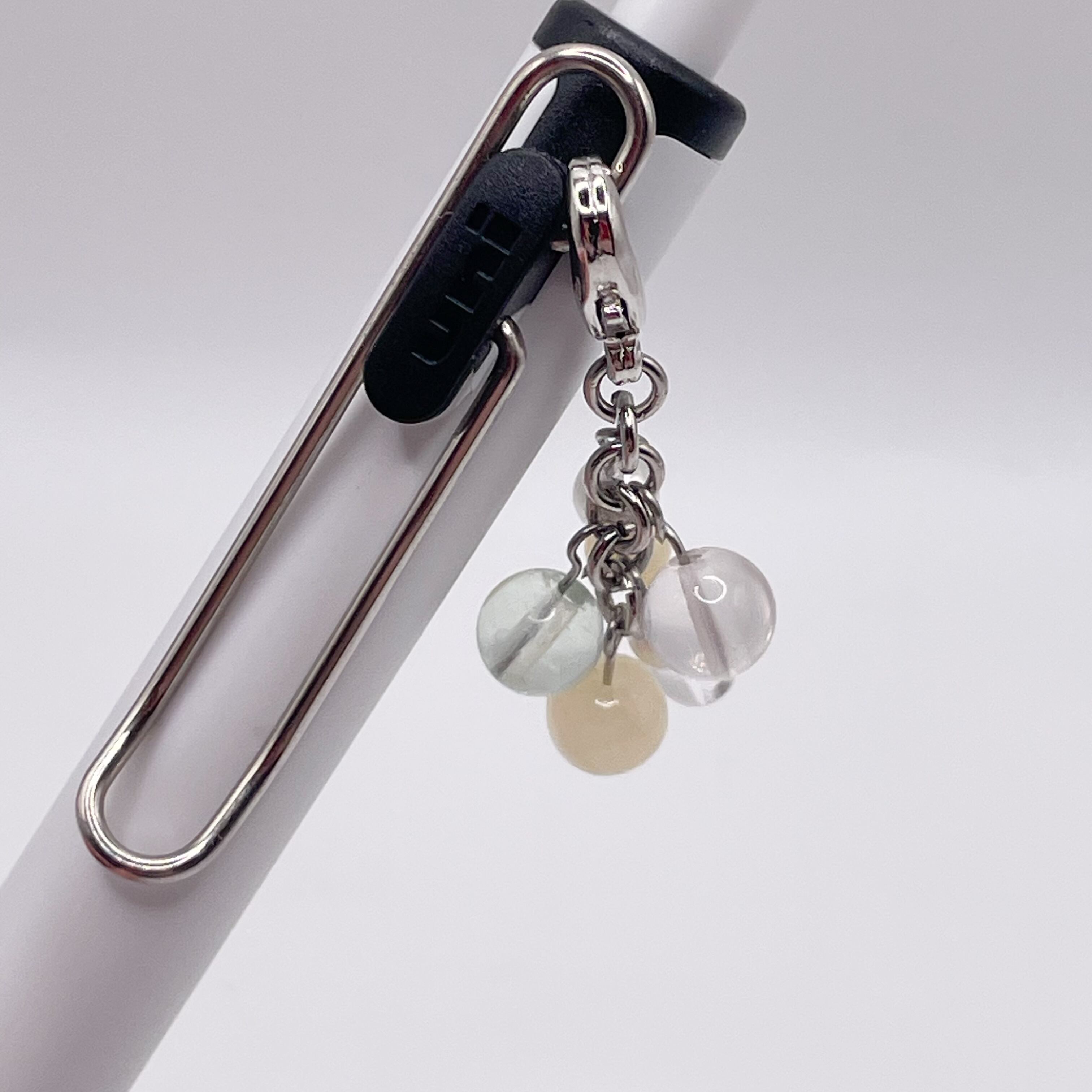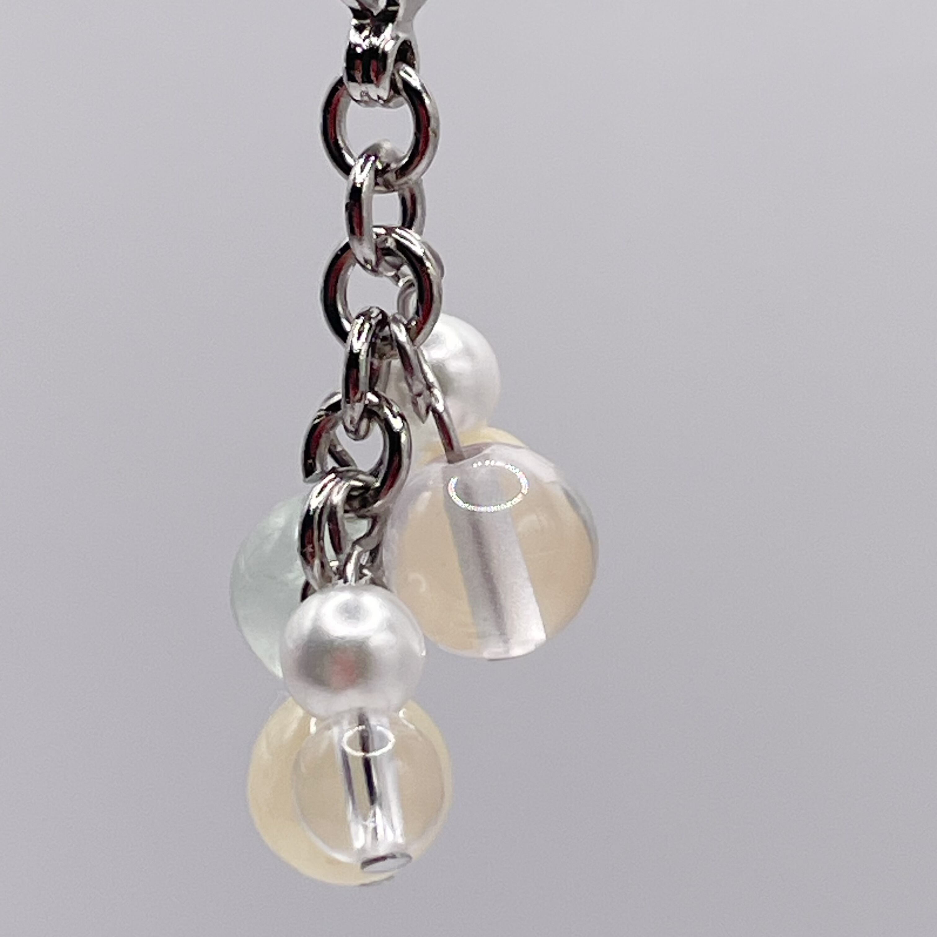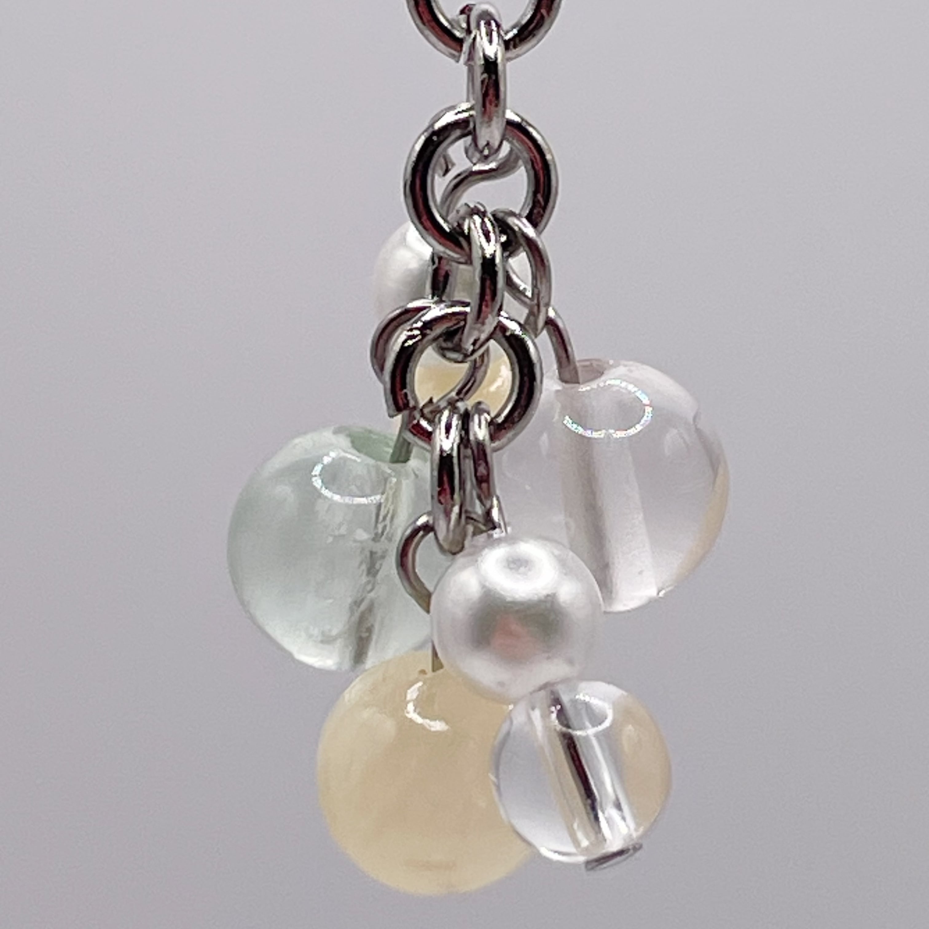 ハニーストーン、トパーズ、グリーン系のフローライトといったパステルカラーの天然石を中心としたチャームです。