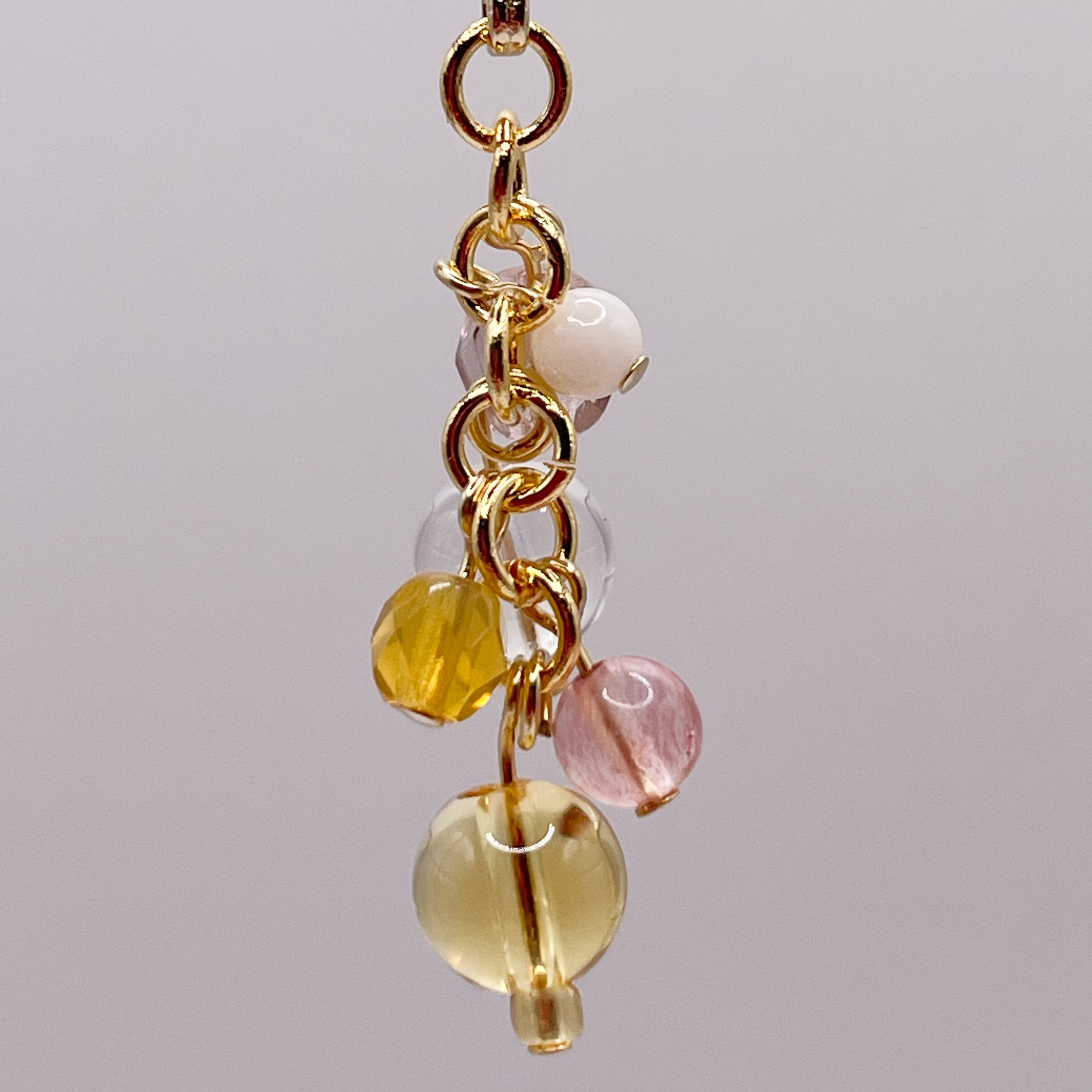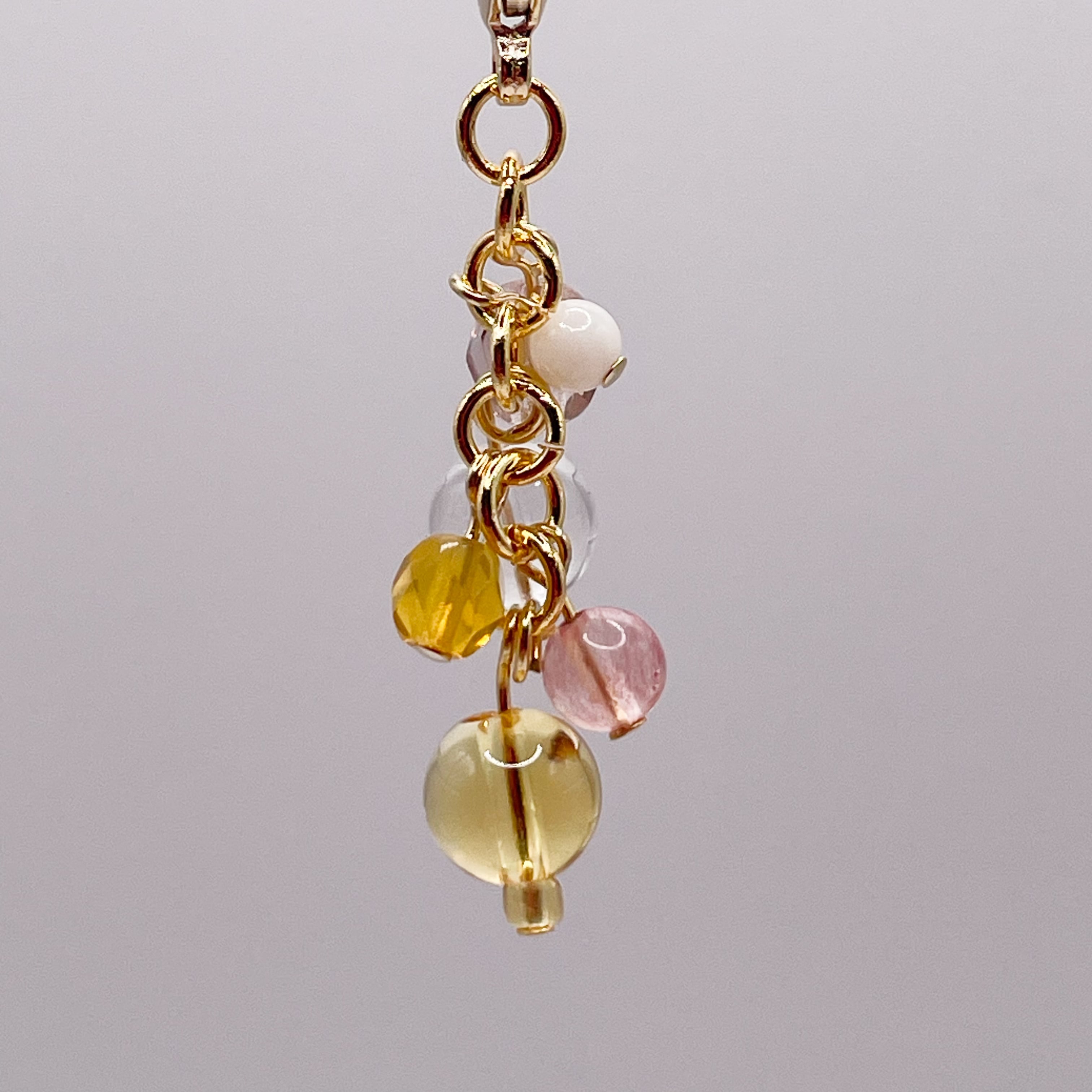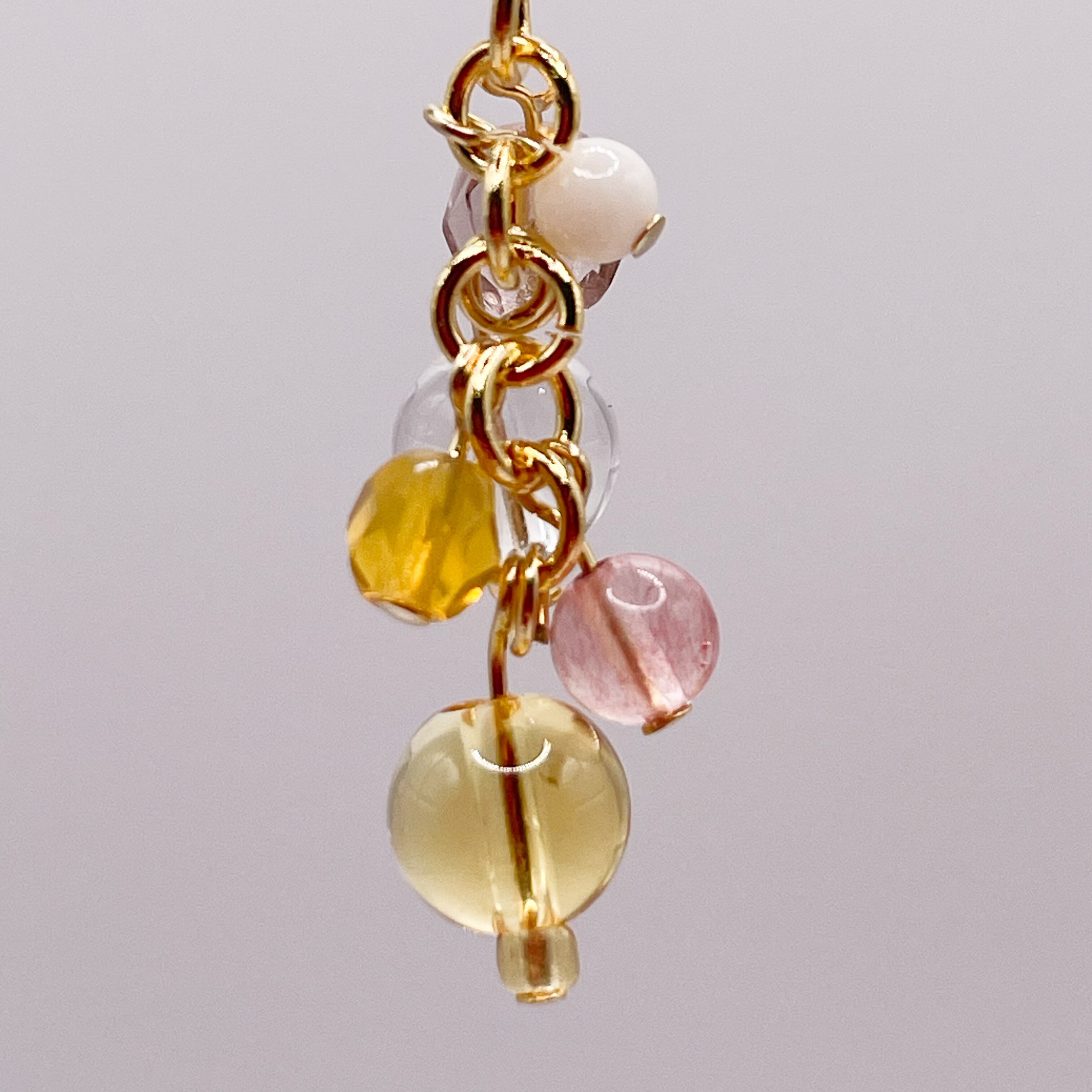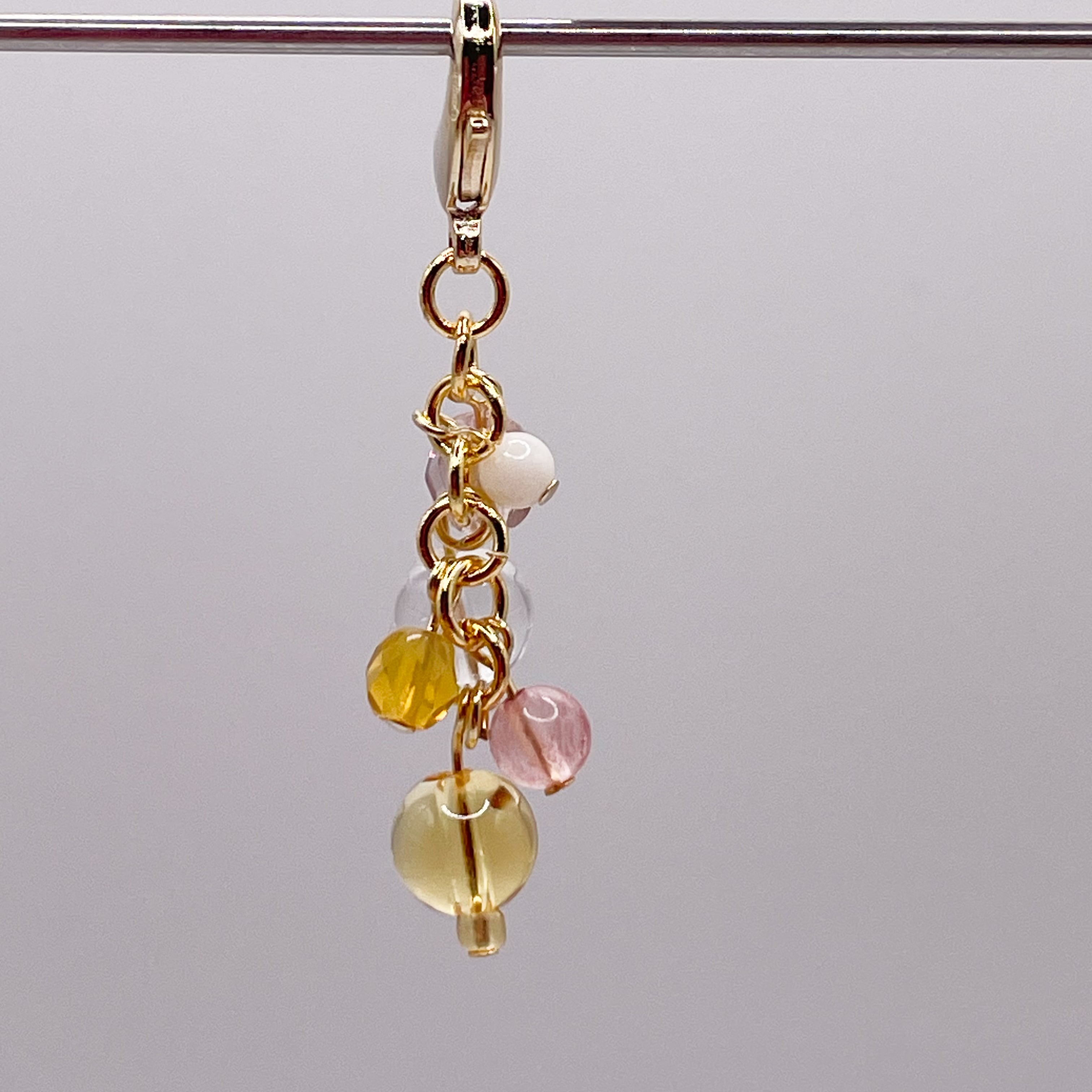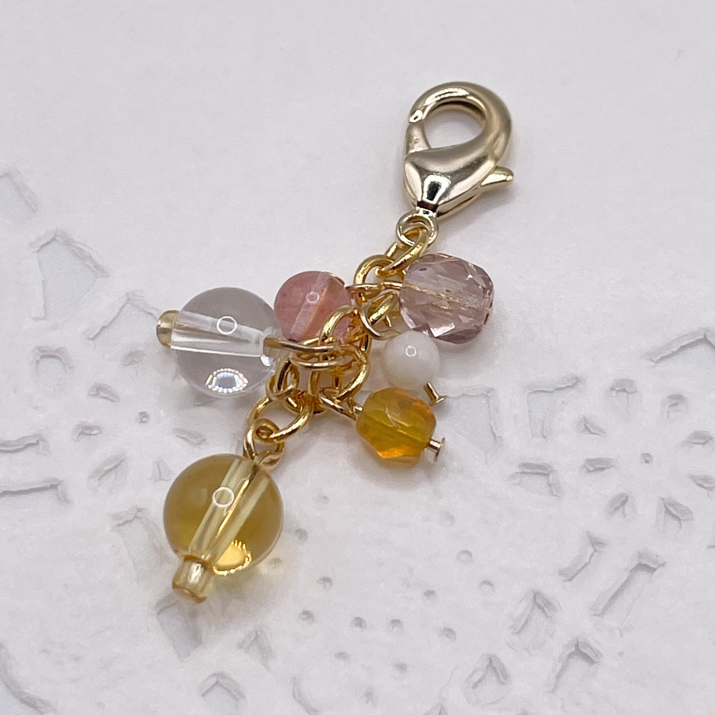 シトリンに水晶、ストロベリークォーツといった華やかな色の天然石を合わせたチャームです。