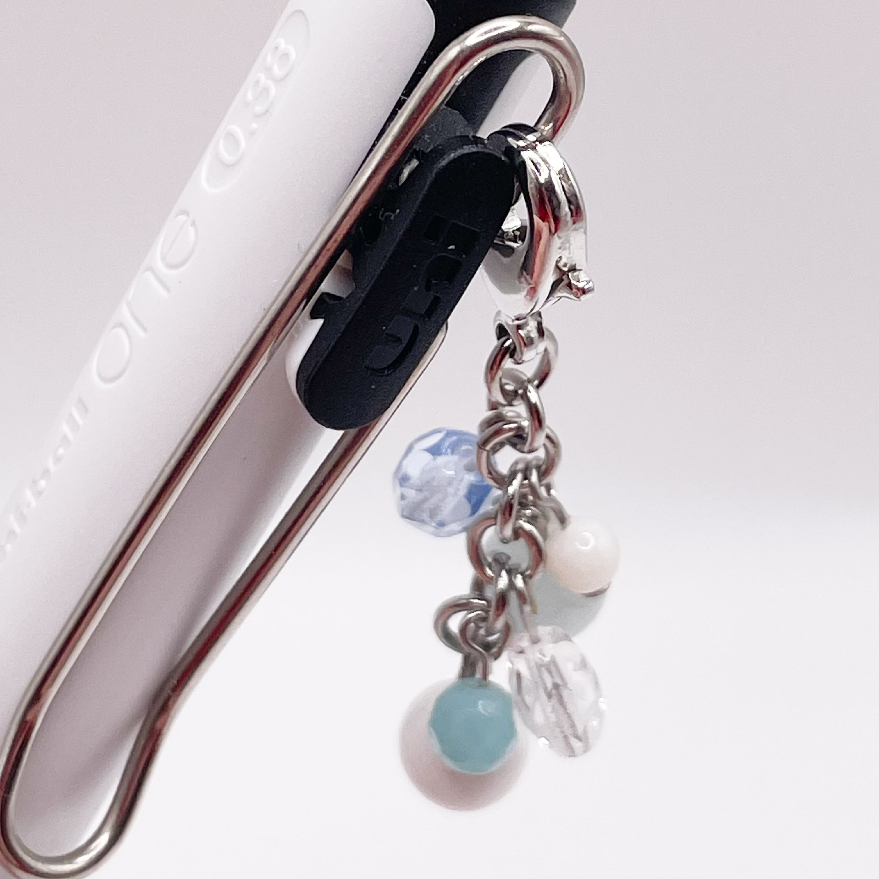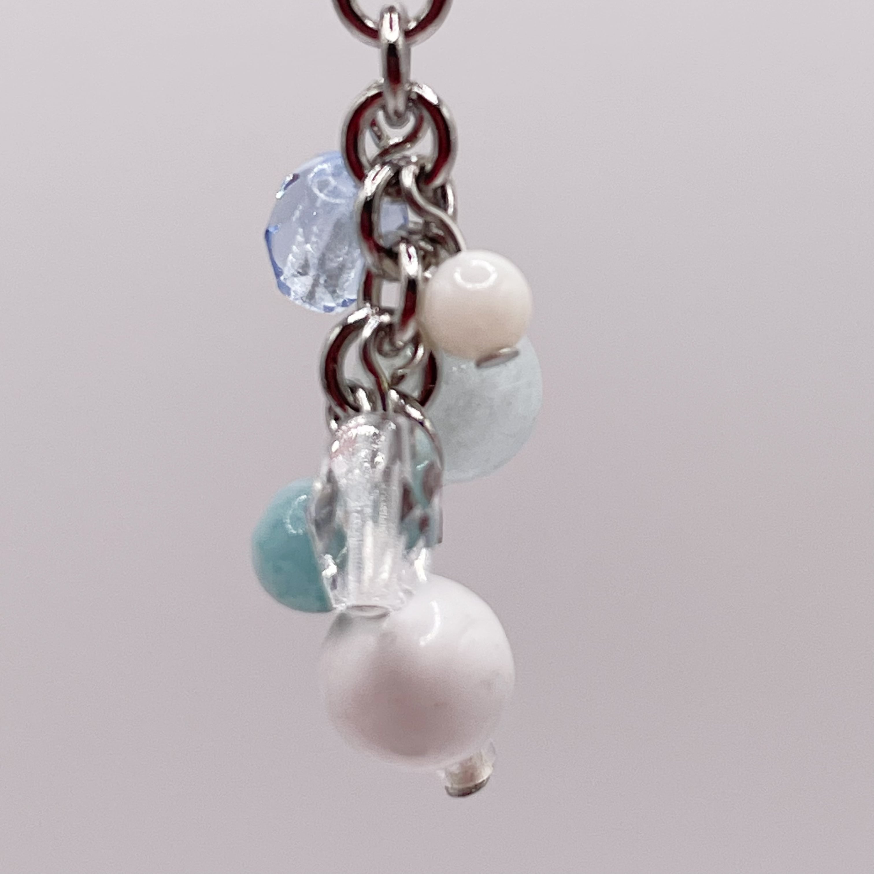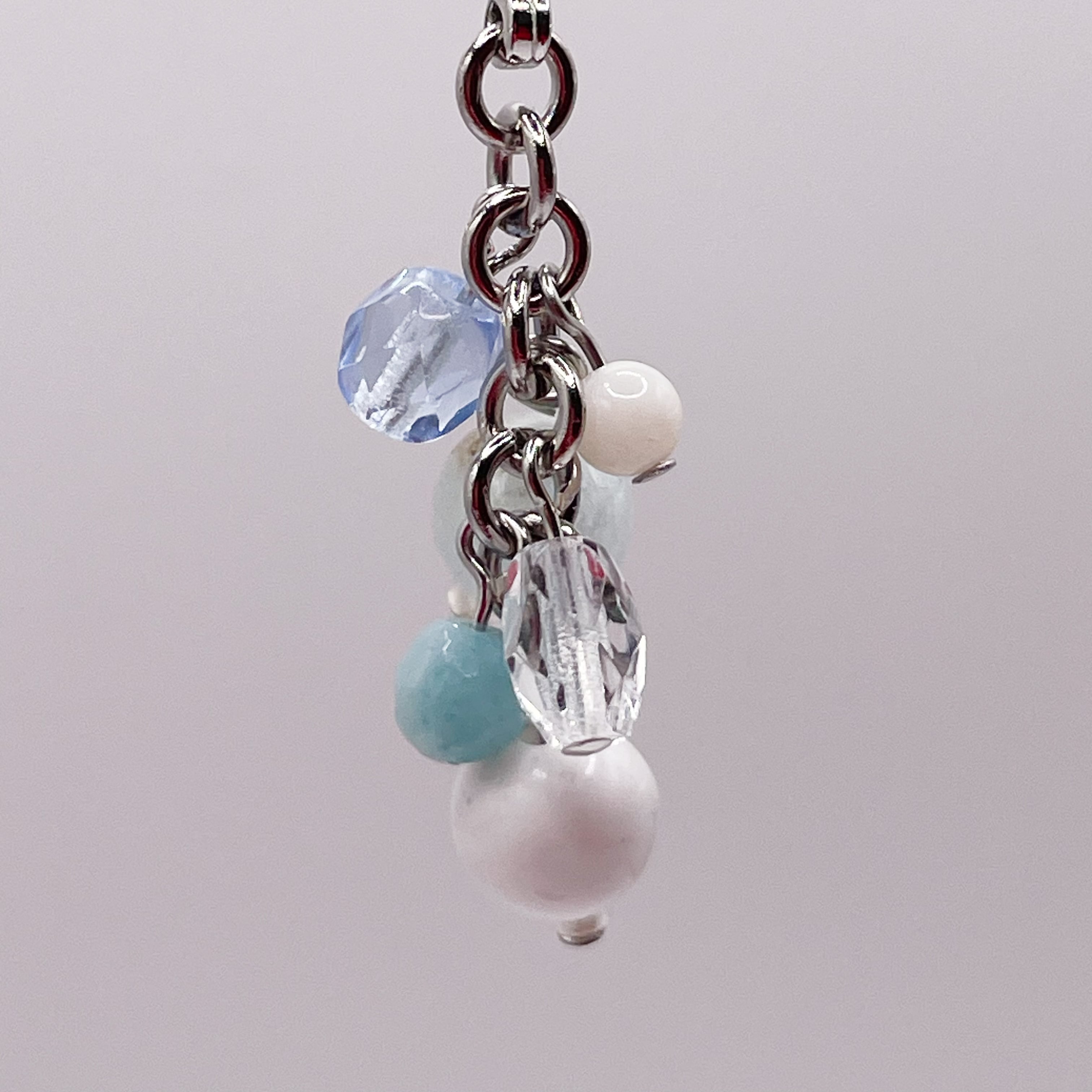 アクアマリンやアマゾナイトといったブルー系の天然石に白いマグネサイトを合わせたチャームです。