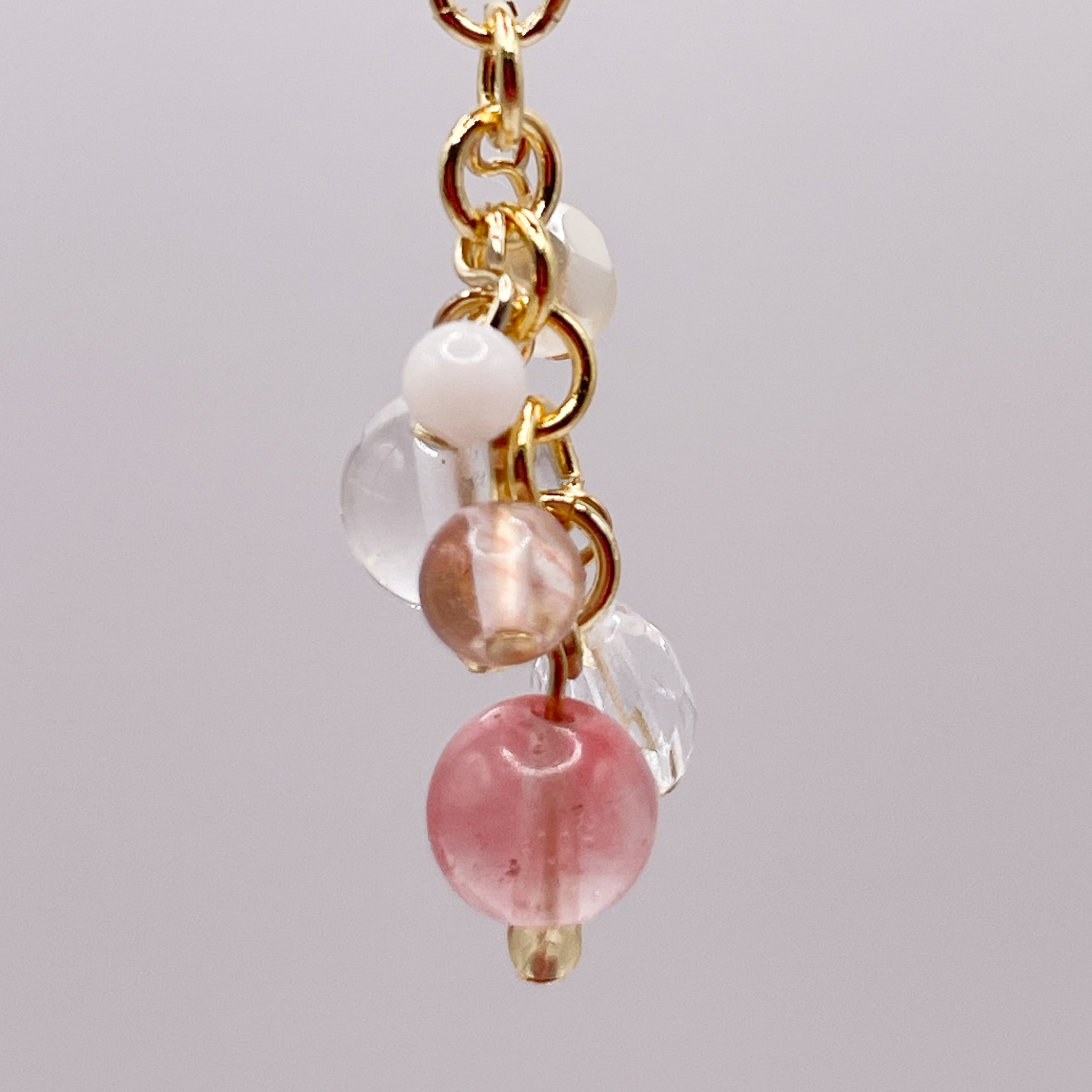 モチーフ部分:ストロベリークォーツ、ローズクォーツ、ホワイトコーラル、チェコビーズ