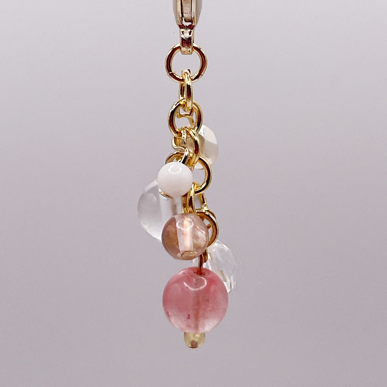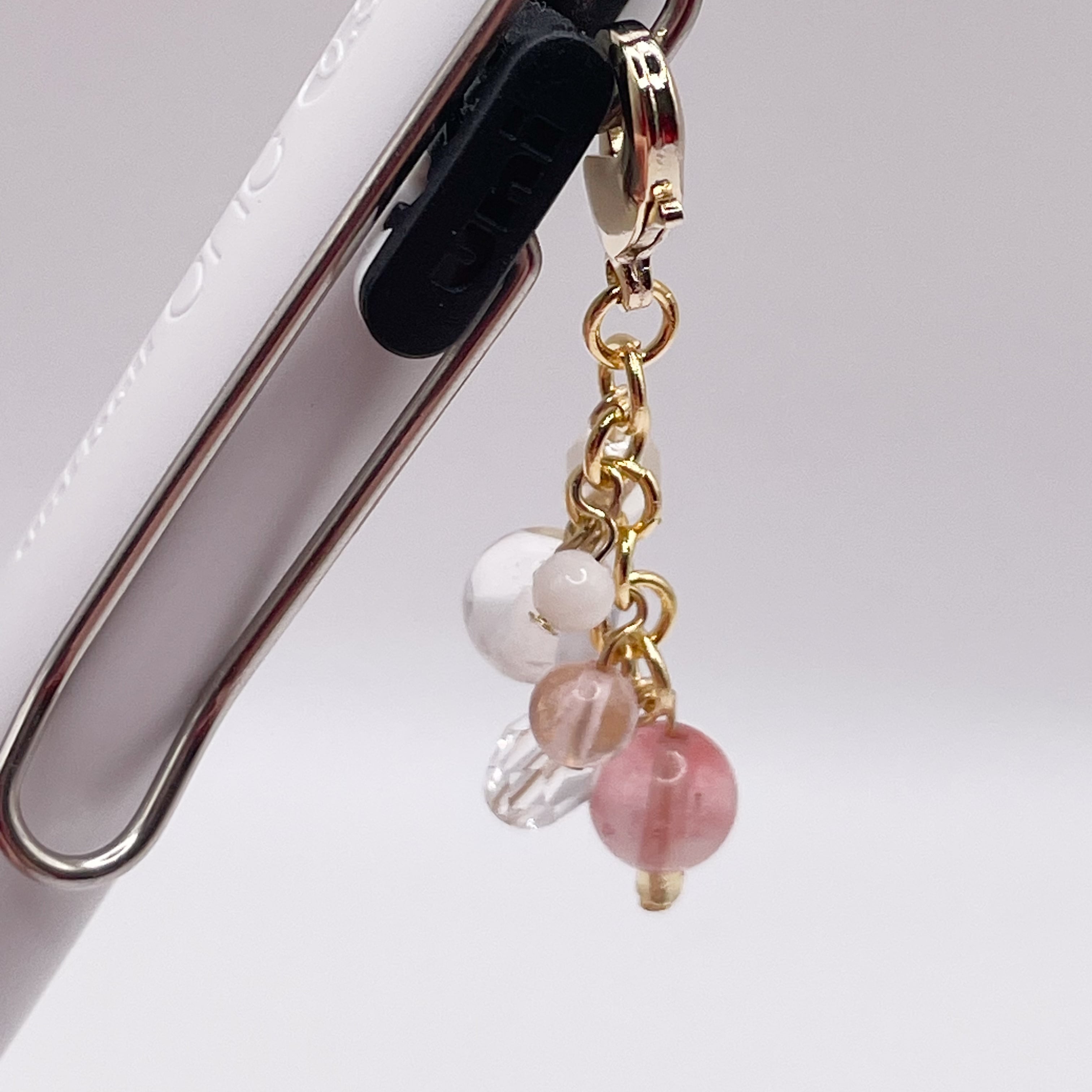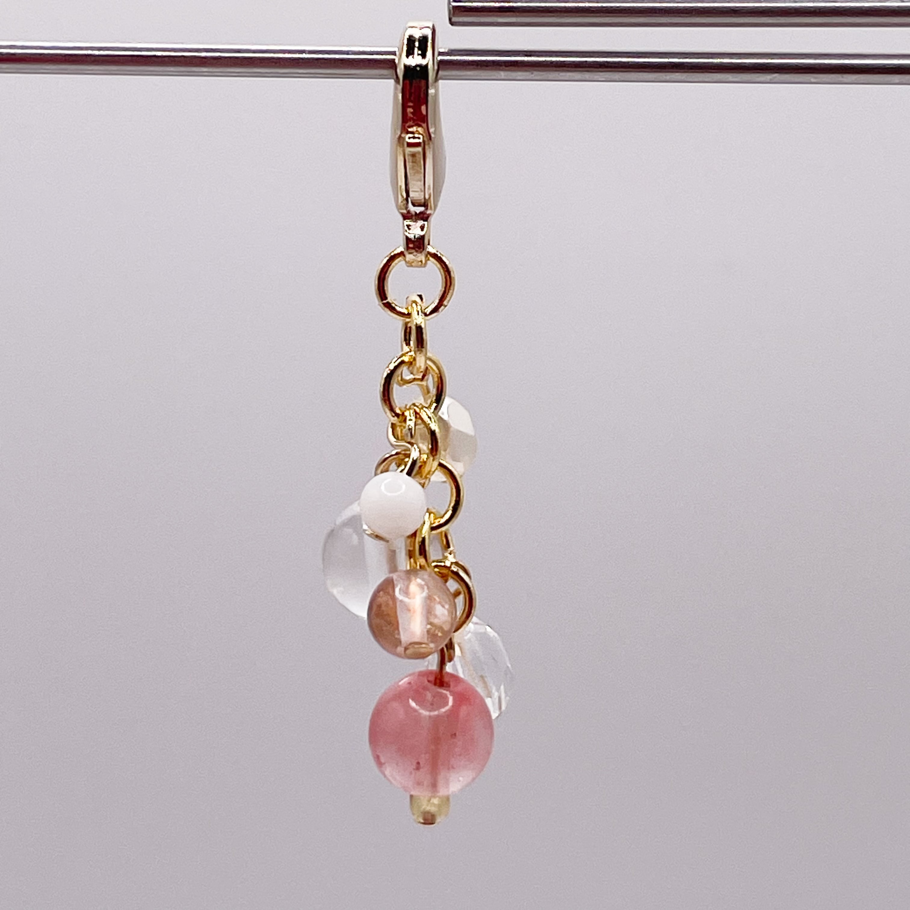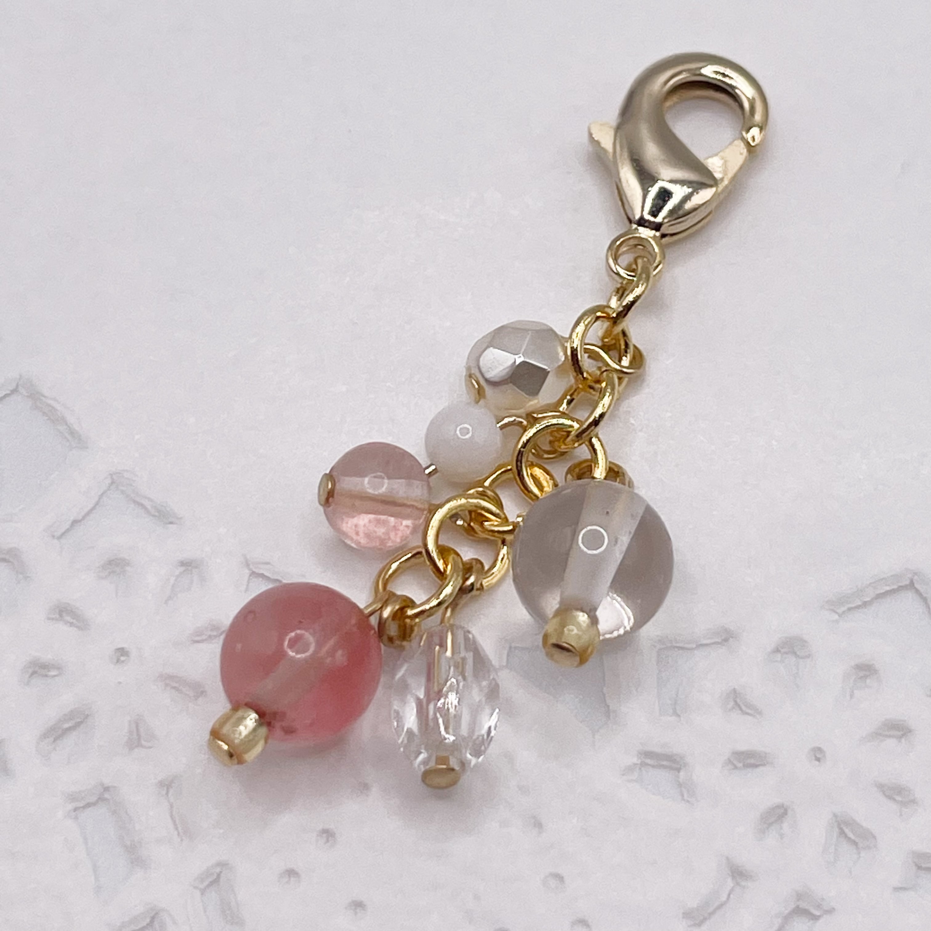 ストロベリークォーツとローズクォーツといった女性に人気の天然石を使ったチャームです。