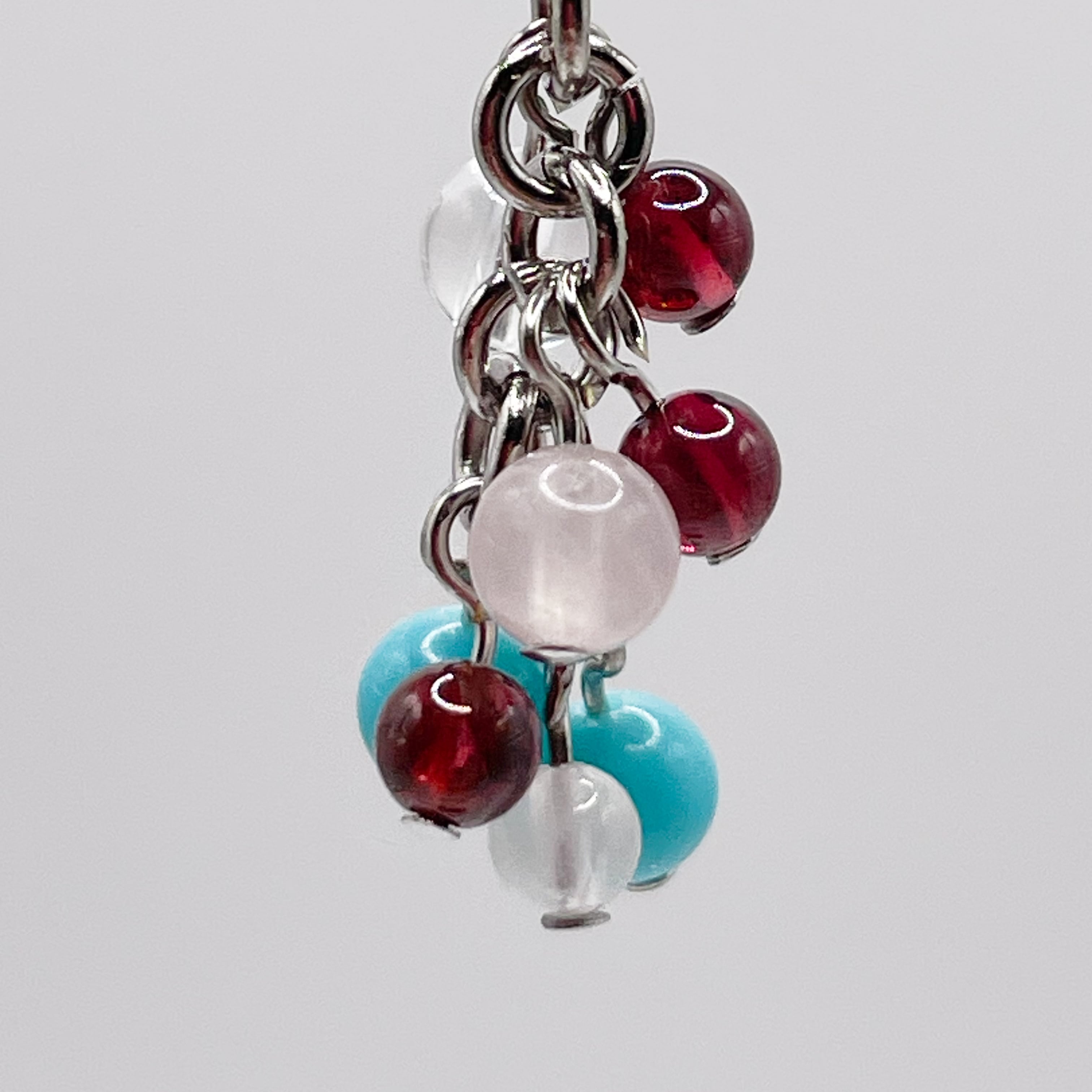 Lucky Charm|ターコイズ&ガーネット&ローズクォーツの天然石チャーム(ペンダントトップ/片耳ピアス)|g-005