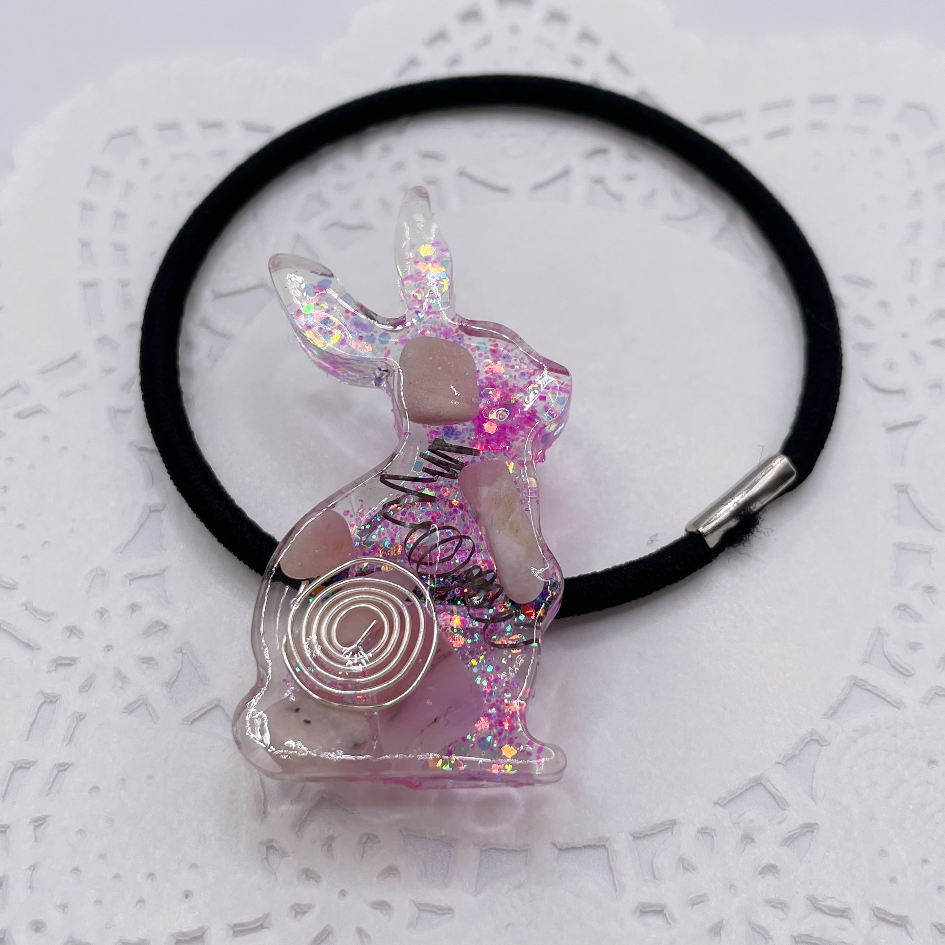 うさぎのオルゴナイトの天然石ヘアゴム/ピンクオパール|g-021【One of a Kind rabbit Hair Tie – Natural Stone Accessory】