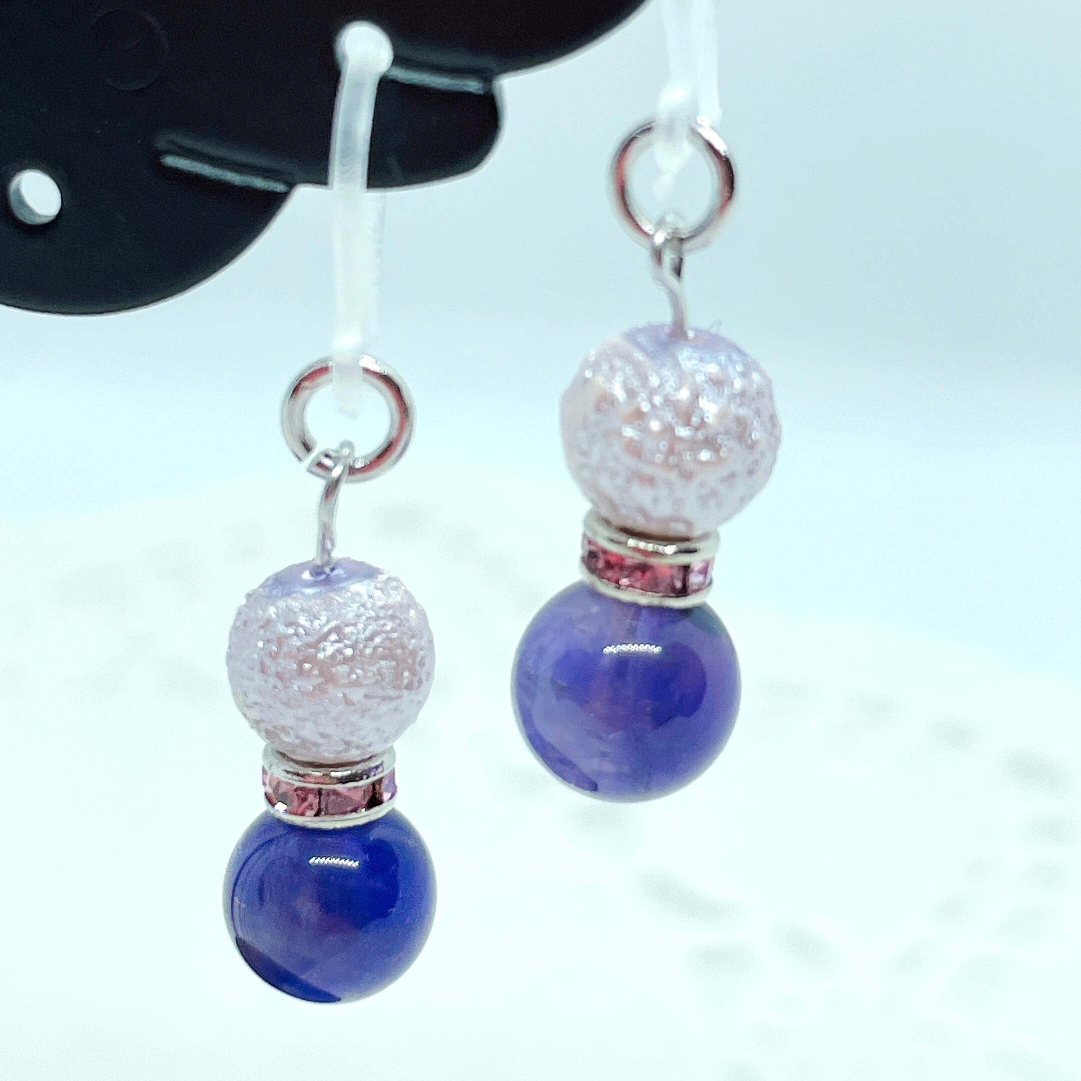 「恋愛や愛情を引き寄せる」といわれているアメジストとシュガーパール組み合わせたプチピアス(イヤリング/チャーム)です。