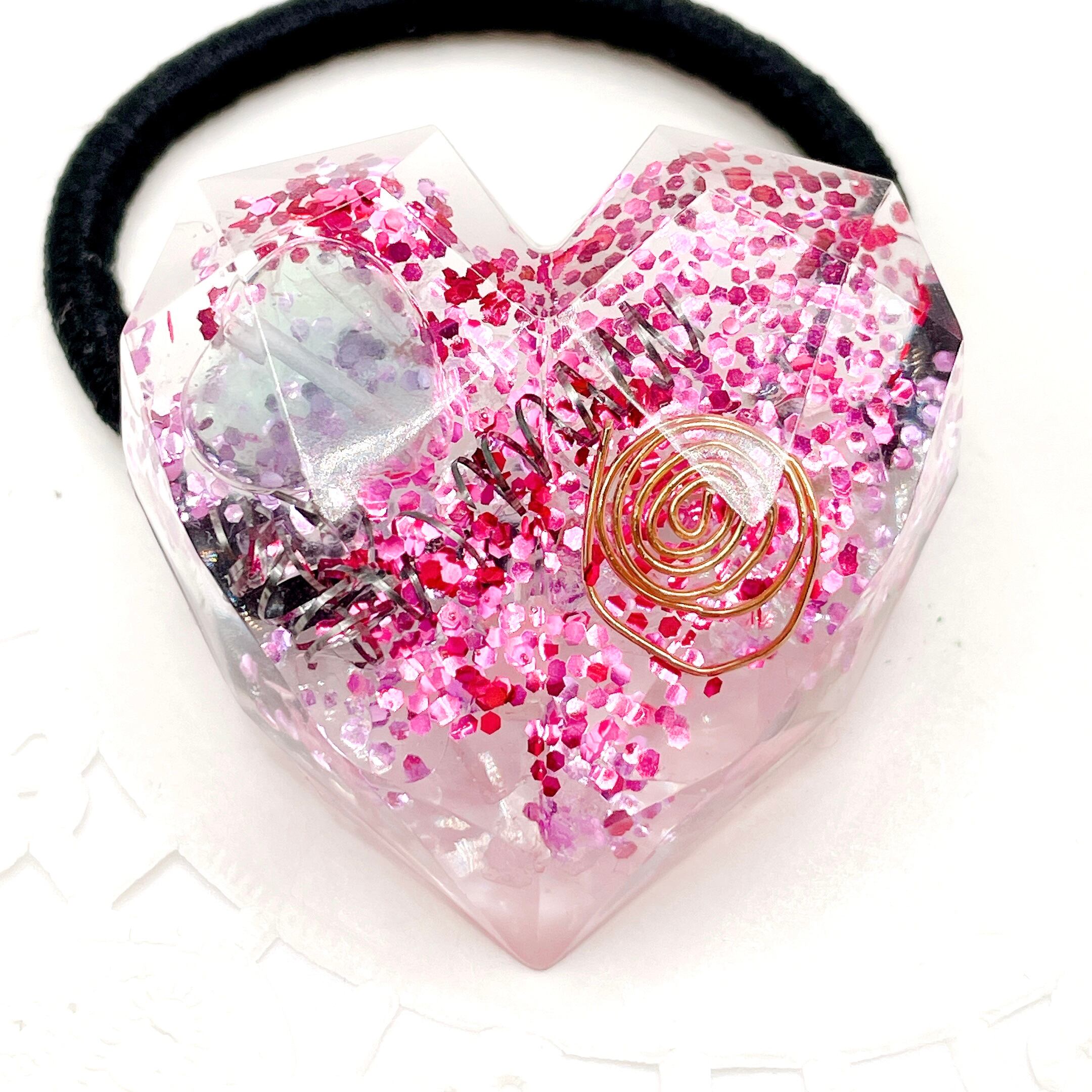 【Sold out】 or-030 恋愛運UP!ハートのオルゴナイトヘアゴム(フローライト&ローズクォーツ)