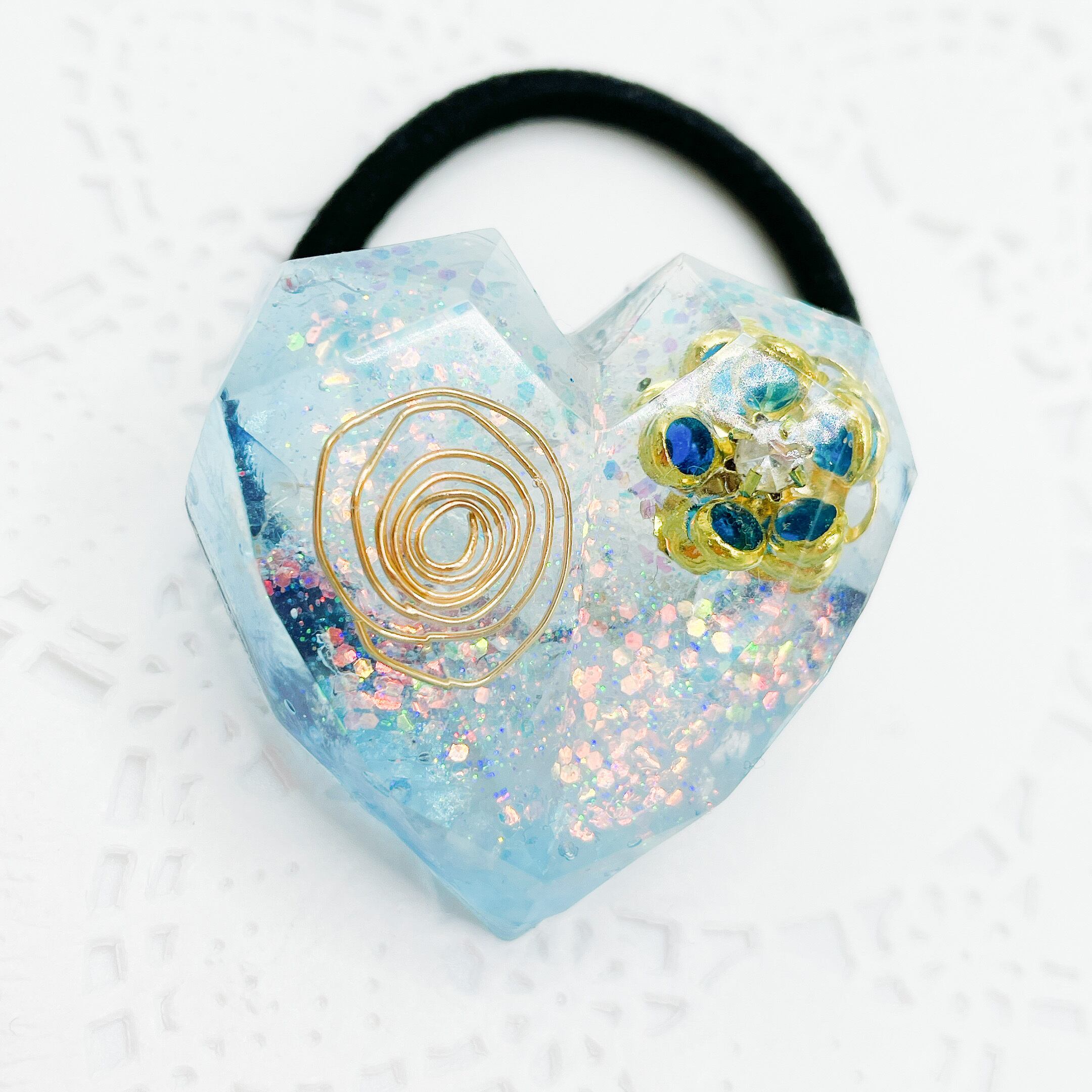 【Sold out】 or-007 恋愛運UP!ハートのオルゴナイト・ヘアゴム ブルー×ブルー(ローズクォーツ)