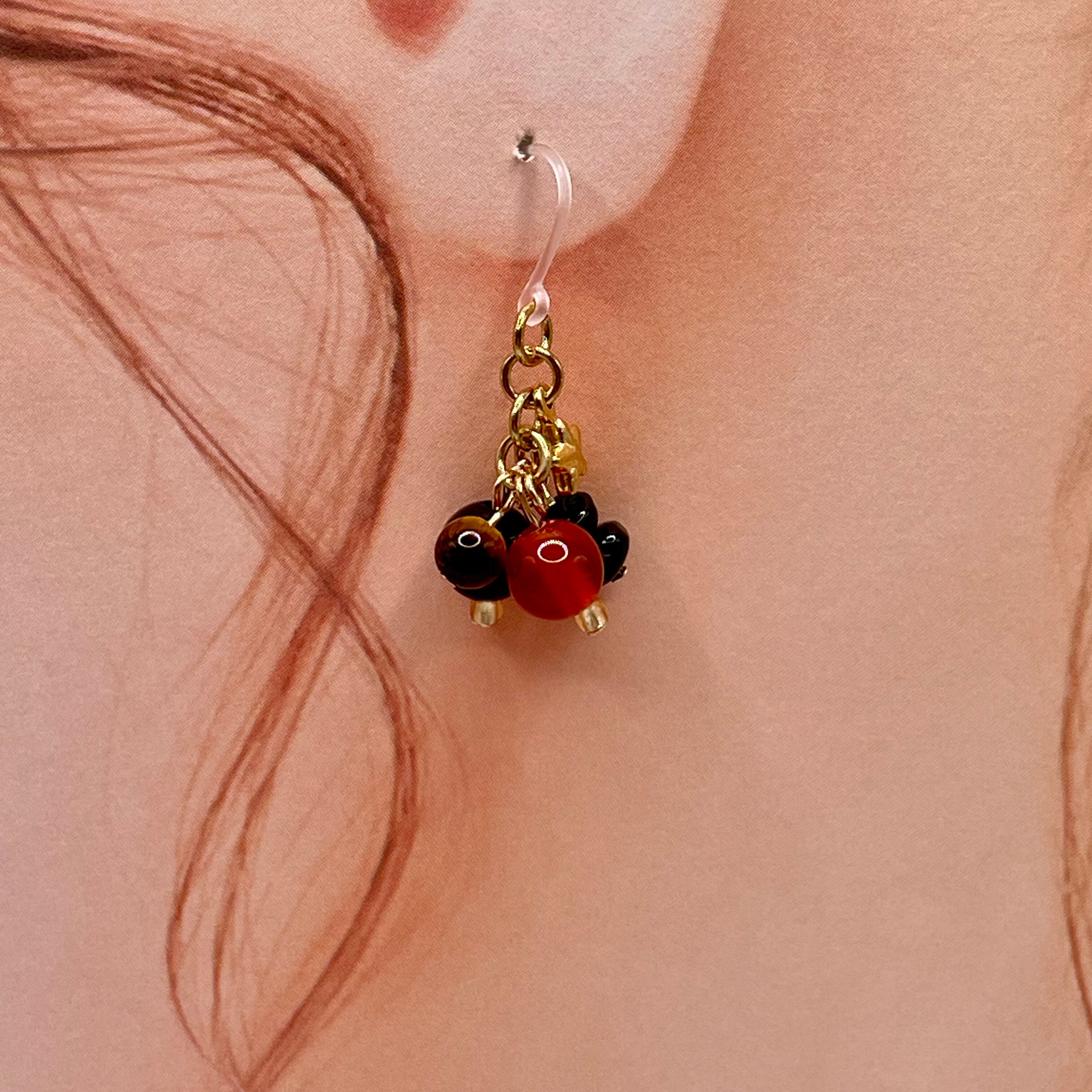 カーネリアン、オニキス、タイガーアイを使ったピアス(イヤリング/チャーム)です。